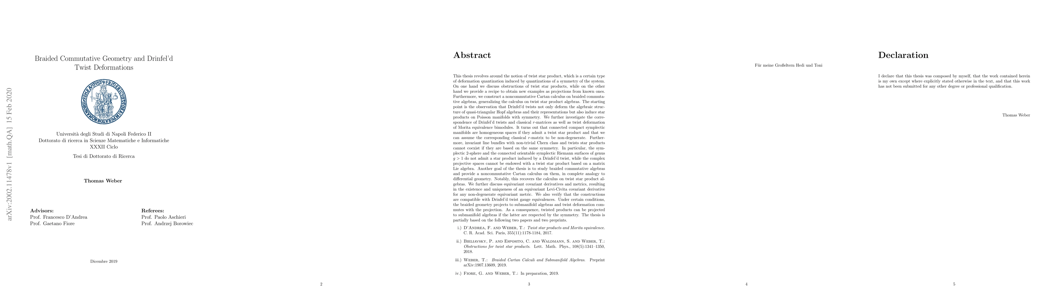 In this thesis we give obstructions for Drinfel'd twist deformation quantization on several classes of symplectic manifolds. Motivated from this quantization procedure, we further construct a noncommutative Cartan calculus on any braided commutative algebra, as well as an equivariant Levi-Civita covariant derivative for any non-degenerate equivariant metric. This generalizes and unifies the Cartan calculus on a smooth manifold and the Cartan calculus on twist star product algebras. We prove that the Drinfel'd functor leads to equivalence classes in braided commutative geometry and commutes with submanifold algebra projection.