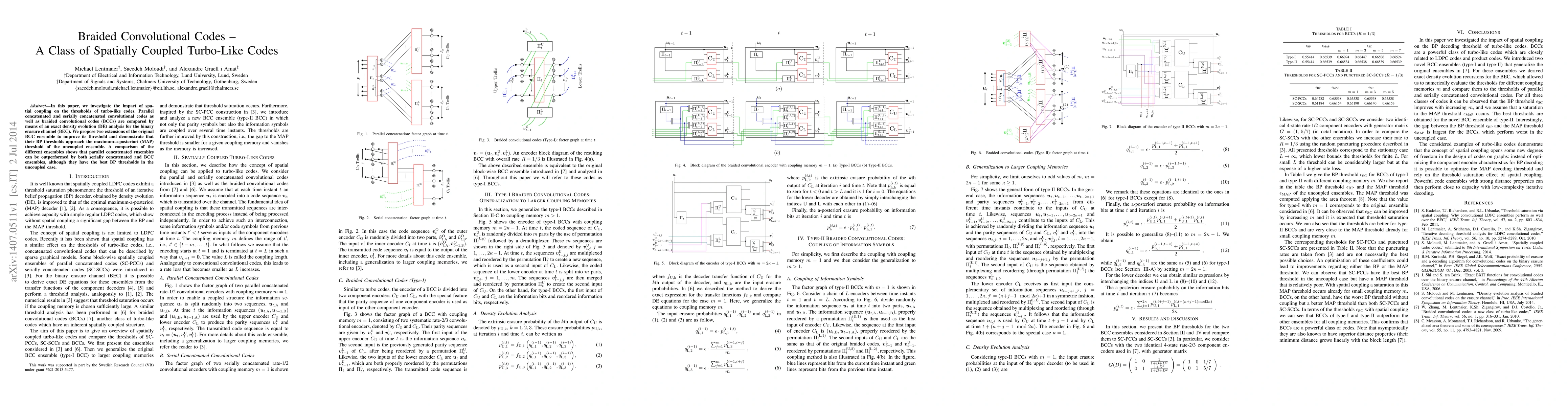 This paper explores the performance of braided convolutional codes (BCCs) through spatial coupling, comparing them to parallel and serial concatenated convolutional codes. The study reveals that BCCs can outperform parallel concatenated codes in terms of thresholds, approaching the maximum-a-posteriori (MAP) threshold of uncoupled codes.