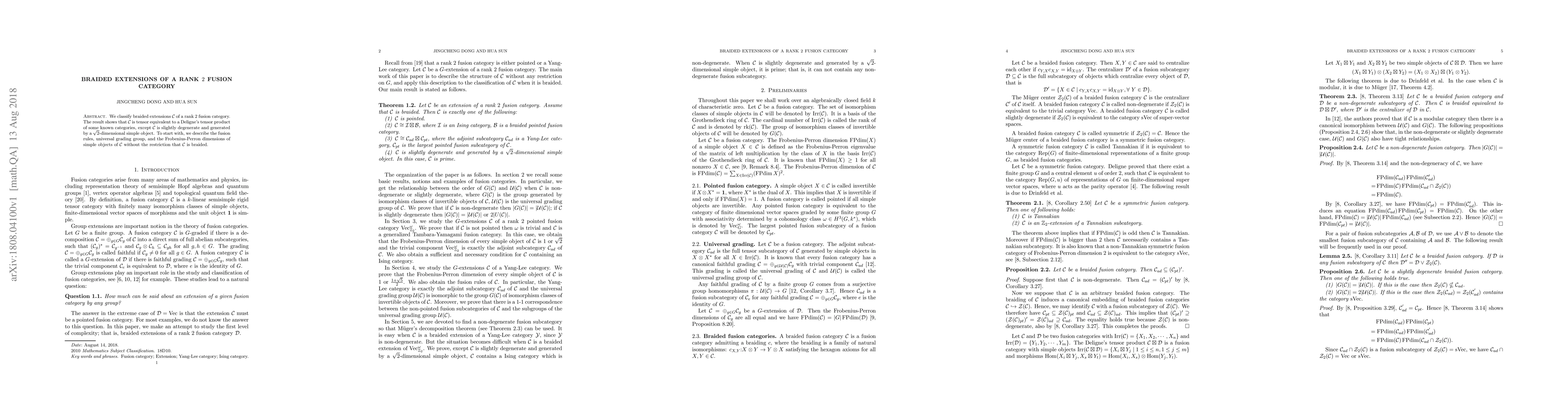 We classify braided extensions $C$ of a rank $2$ fusion category. The result shows that $C$ is tensor equivalent to a Deligne's tensor product of some known categories, except $C$ is slightly degenerate and generated by a $\sqrt{2}$-dimensional simple object. To start with, we describe the fusion rules, universal grading group, and the Frobenius-Perron dimensions of simple objects of $C$ without the restriction that $C$ is braided.