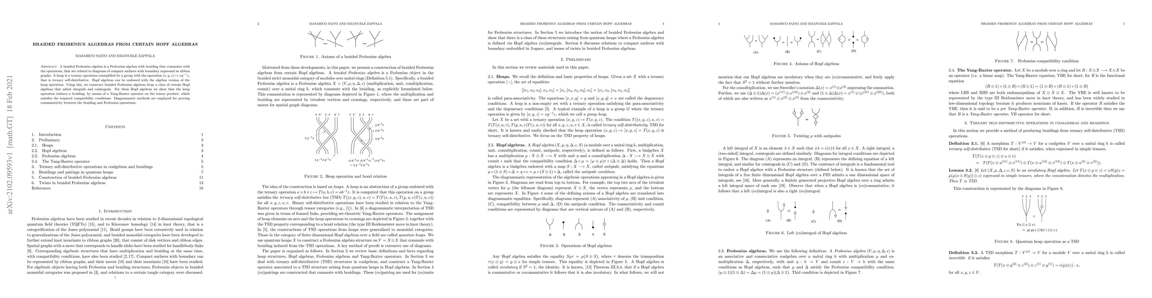 This paper constructs braided Frobenius algebras from specific Hopf algebras that have integrals and cointegrals, using a heap operation. It demonstrates that this operation induces a braiding via a Yang-Baxter operator, and employs diagrammatic methods to prove compatibility with Frobenius operations.