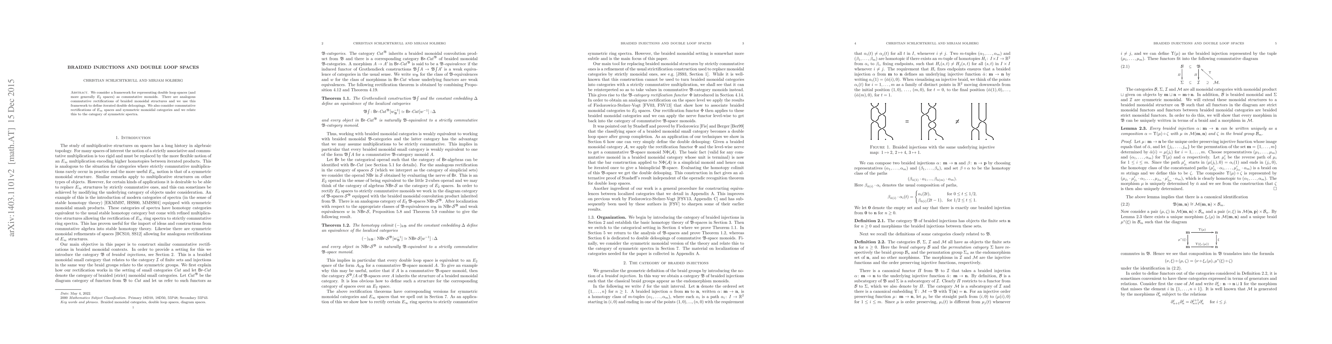 This paper establishes a framework for interpreting double loop spaces and E-2 spaces as commutative monoids, and explores the analogous rectifications of braided monoidal structures, defining iterated double deloopings. It also examines commutative rectifications of E-infinity spaces and symmetric monoidal categories, linking these to the category of symmetric spectra.