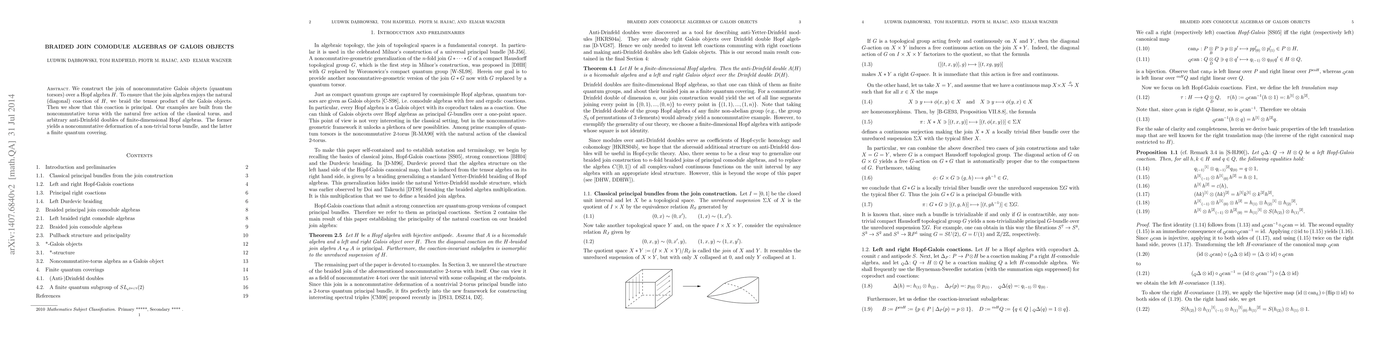 We construct the join of noncommutative Galois objects (quantum torsors) over a Hopf algebra H. To ensure that the join algebra enjoys the natural (diagonal) coaction of H, we braid the tensor product of the Galois objects. Then we show that this coaction is principal. Our examples are built from the noncommutative torus with the natural free action of the classical torus, and arbitrary anti-Drinfeld doubles of finite-dimensional Hopf algebras. The former yields a noncommutative deformation of a non-trivial torus bundle, and the latter a finite quantum covering.