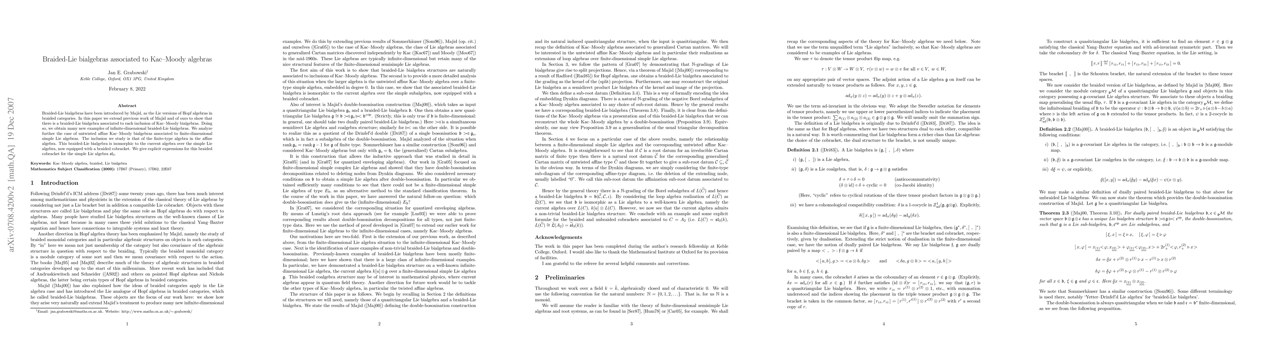 Braided-Lie bialgebras have been introduced by Majid, as the Lie versions of Hopf algebras in braided categories. In this paper we extend previous work of Majid and of ours to show that there is a braided-Lie bialgebra associated to each inclusion of Kac-Moody bialgebras. Doing so, we obtain many new examples of infinite-dimensional braided-Lie bialgebras. We analyze further the case of untwisted affine Kac-Moody bialgebras associated to finite-dimensional simple Lie algebras. The inclusion we study is that of the finite-type algebra in the affine algebra. This braided-Lie bialgebra is isomorphic to the current algebra over the simple Lie algebra, now equipped with a braided cobracket. We give explicit expressions for this braided cobracket for the simple Lie algebra $sl_3$.