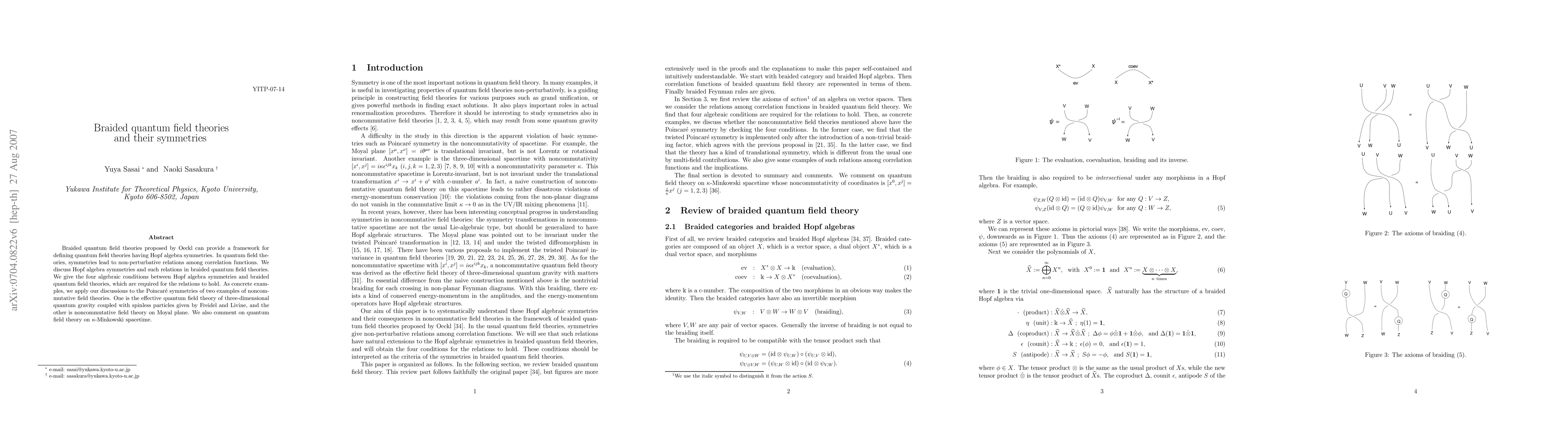 This paper explores braided quantum field theories and their Hopf algebra symmetries, establishing four algebraic conditions for non-perturbative relations among correlation functions. It applies these conditions to Poincaré symmetries in noncommutative field theories, including examples like the effective quantum field theory of three-dimensional quantum gravity and the noncommutative field theory on the Moyal plane.