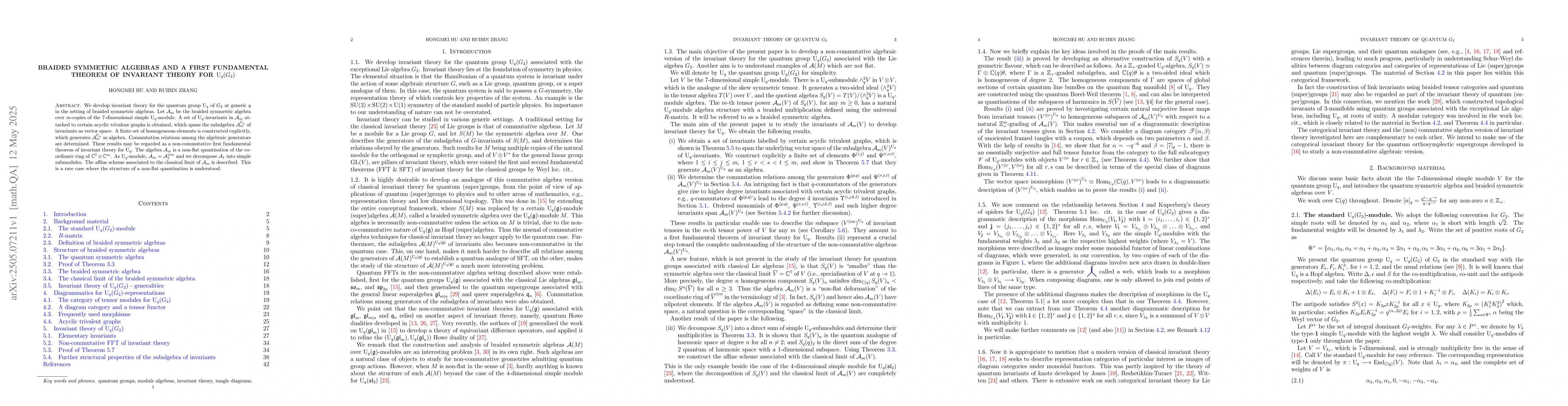 The paper presents a first fundamental theorem of invariant theory for U_q(G_2) in the context of braided symmetric algebras, providing explicit generators and relations.
