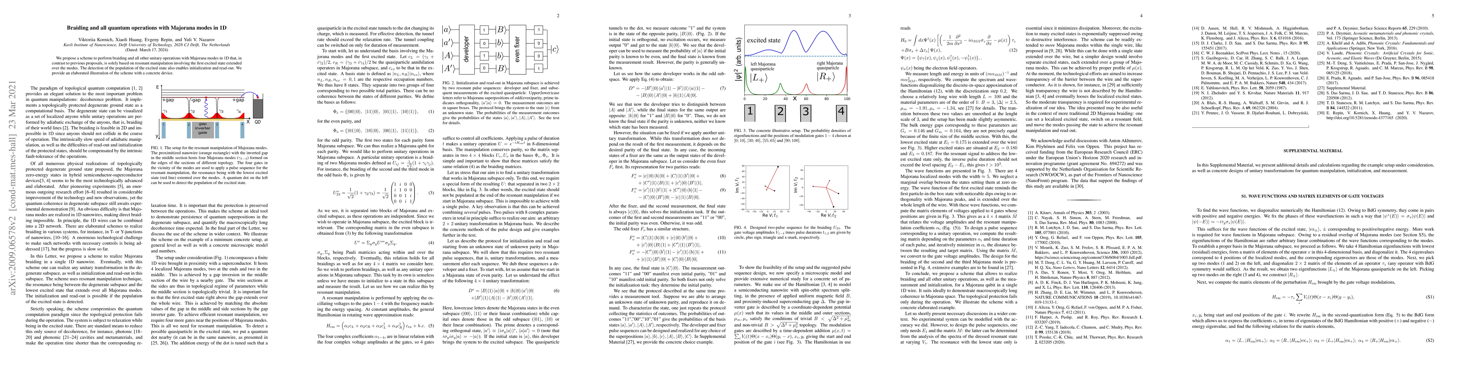 Researchers propose a scheme to perform braiding and unitary operations using Majorana modes in 1D, leveraging resonant manipulation of the first excited state and its population for initialization and read-out.