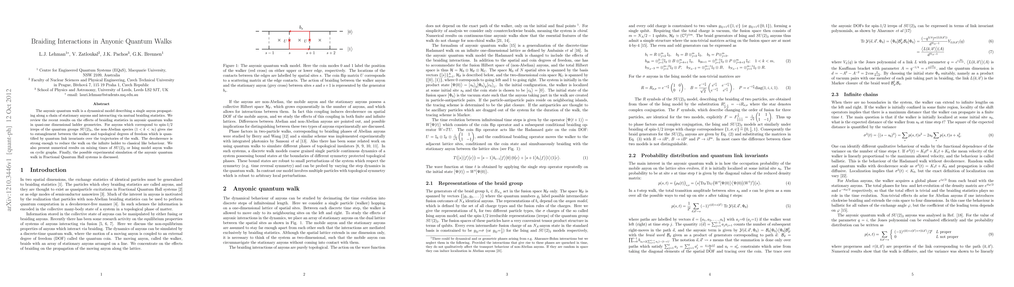 statistics in anyonic quantum walks in quasi-one dimensional ladder geometries.