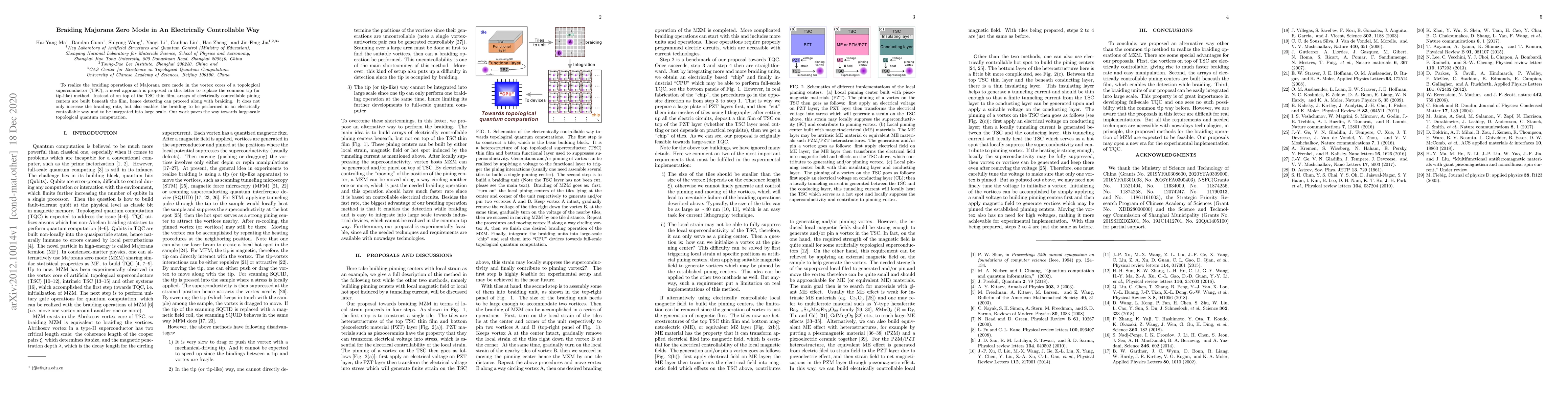 This paper proposes a novel method to electrically control braiding operations of Majorana zero modes in topological superconductors by using arrays of controllable pinning centers beneath the film, enhancing braiding efficiency and scalability for large-scale quantum computation.