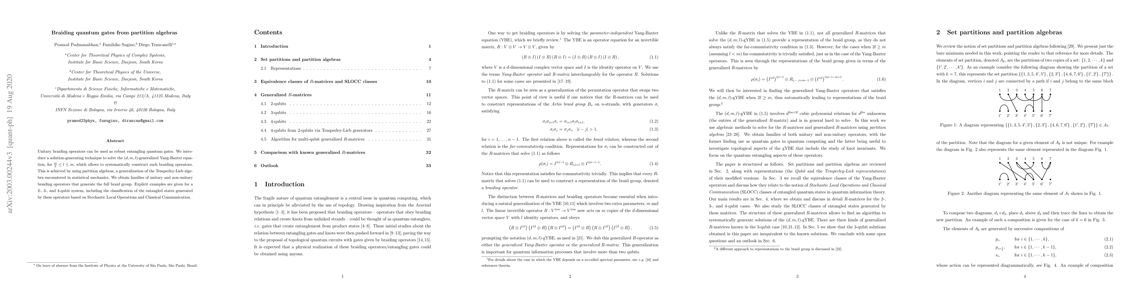 Unitary braiding operators can be used as robust entangling quantum gates. We introduce a solution-generating technique to solve the $(d,m,l)$-generalized Yang-Baxter equation, for $m/2\leq l \leq m$, which allows to systematically construct such braiding operators. This is achieved by using partition algebras, a generalization of the Temperley-Lieb algebra encountered in statistical mechanics. We obtain families of unitary and non-unitary braiding operators that generate the full braid group. Explicit examples are given for a 2-, 3-, and 4-qubit system, including the classification of the entangled states generated by these operators based on Stochastic Local Operations and Classical Communication.