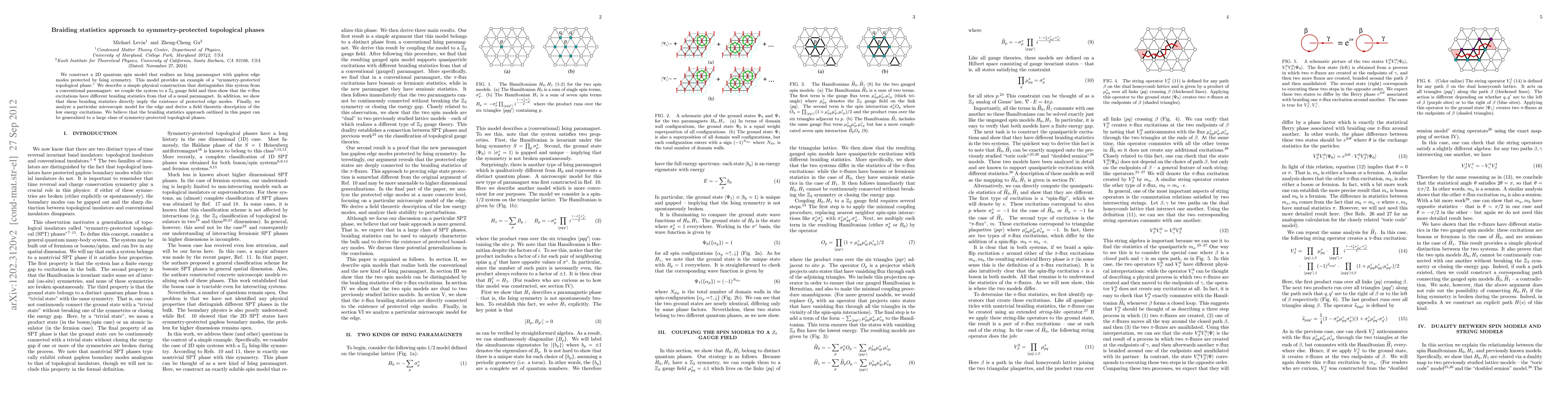 This paper constructs a 2D quantum spin model exemplifying a symmetry-protected topological phase with gapless edge modes protected by Ising symmetry. It demonstrates that \pi-flux excitations exhibit unique braiding statistics, distinguishing it from conventional paramagnets and confirming the existence of protected edge modes.