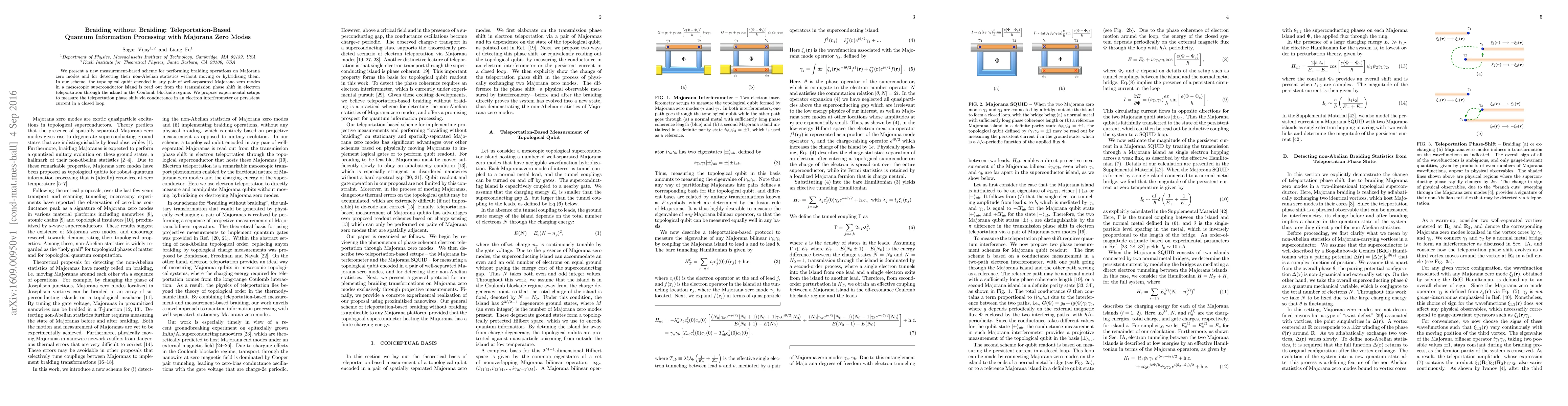 This paper proposes a novel method for performing braiding operations on Majorana zero modes using electron teleportation instead of traditional physical braiding, enabling the detection of their non-Abelian statistics. The approach reads out the topological qubit from transmission phase shifts during teleportation in a mesoscopic superconductor island, with experimental setups suggested for measuring the teleportation phase shift.