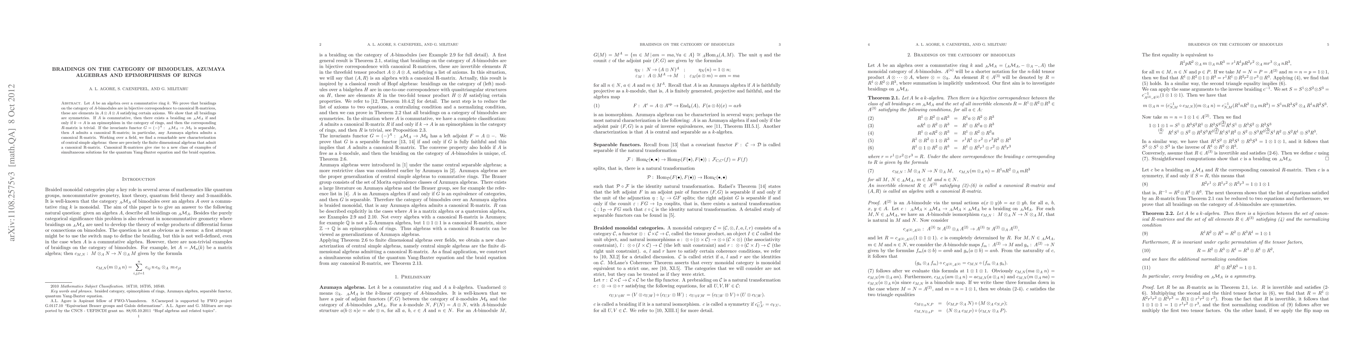 Let $A$ be an algebra over a commutative ring $k$. We prove that braidings on the category of $A$-bimodules are in bijective correspondence to canonical R-matrices, these are elements in $A\ot A\ot A$ satisfying certain axioms. We show that all braidings are symmetries. If $A$ is commutative, then there exists a braiding on ${}_A\Mm_A$ if and only if $k\to A$ is an epimorphism in the category of rings, and then the corresponding $R$-matrix is trivial. If the invariants functor $G = (-)^A:\{}_A\Mm_A\to \Mm_k$ is separable, then $A$ admits a canonical R-matrix; in particular, any Azumaya algebra admits a canonical R-matrix. Working over a field, we find a remarkable new characterization of central simple algebras: these are precisely the finite dimensional algebras that admit a canonical R-matrix. Canonical R-matrices give rise to a new class of examples of simultaneous solutions for the quantum Yang-Baxter equation and the braid equation.