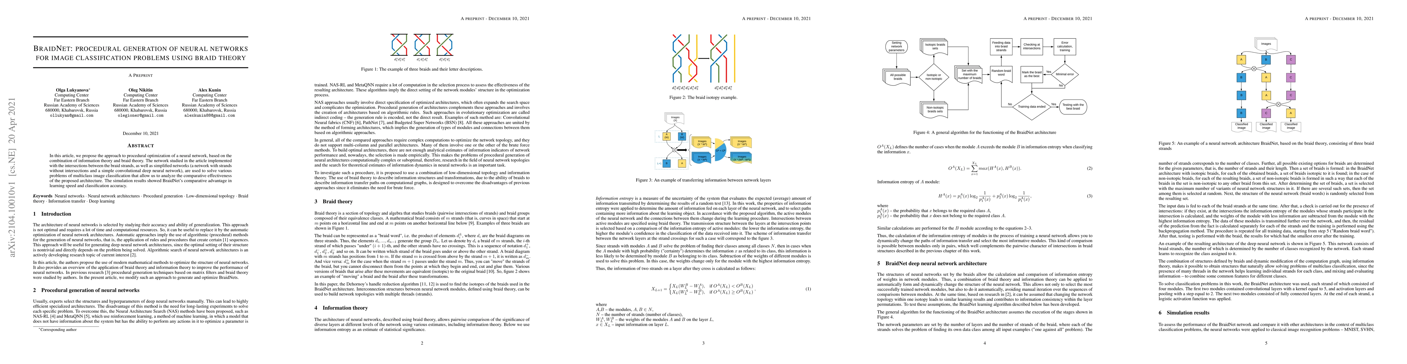 This paper introduces BraidNet, a novel neural network architecture generated procedurally using braid theory, which combines information theory for optimization. Simulation results demonstrate BraidNet's superior learning speed and classification accuracy compared to traditional convolutional networks.