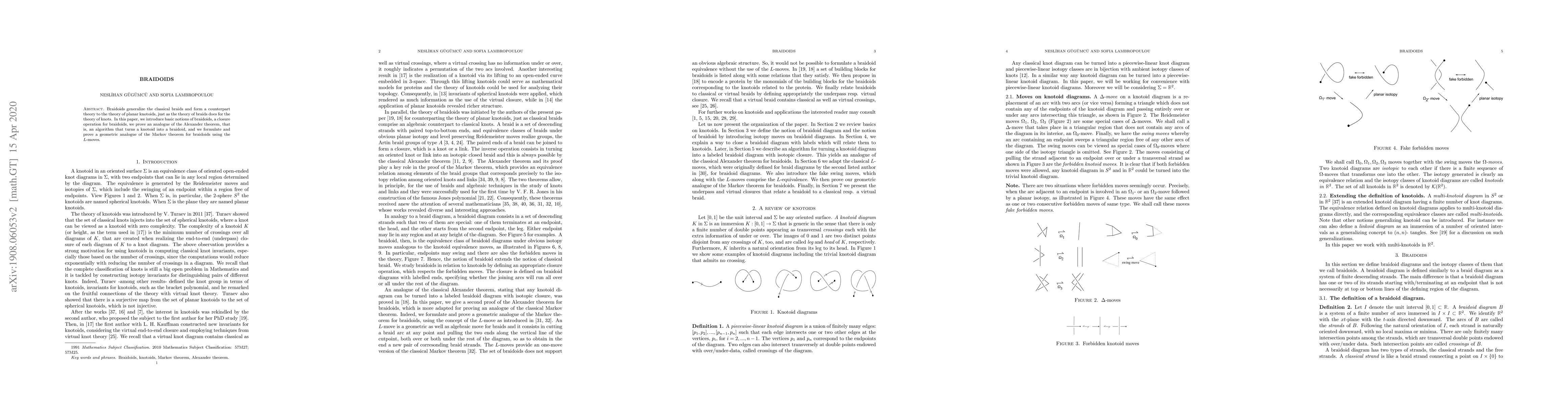 The introduction of braidoids as a generalization of classical braids, along with the development of a braidoiding algorithm, closure operation, and proofs of analogues to the Alexander and Markov theorems using L-moves.