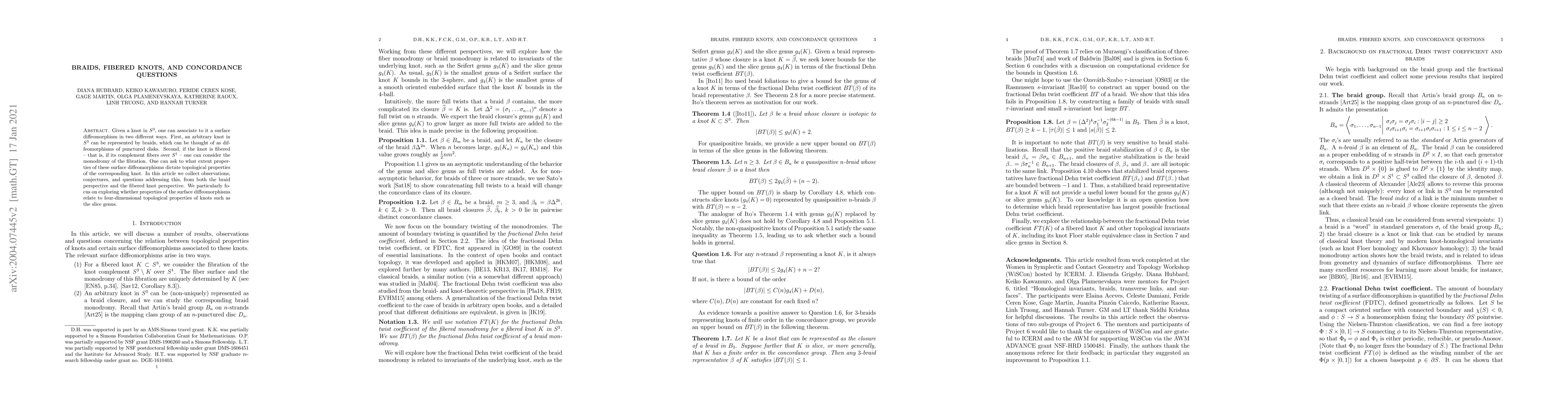This paper explores how properties of surface diffeomorphisms associated with knots, specifically from braid and fibered knot perspectives, relate to four-dimensional topological properties like the slice genus. It compiles observations, conjectures, and questions to investigate this relationship.