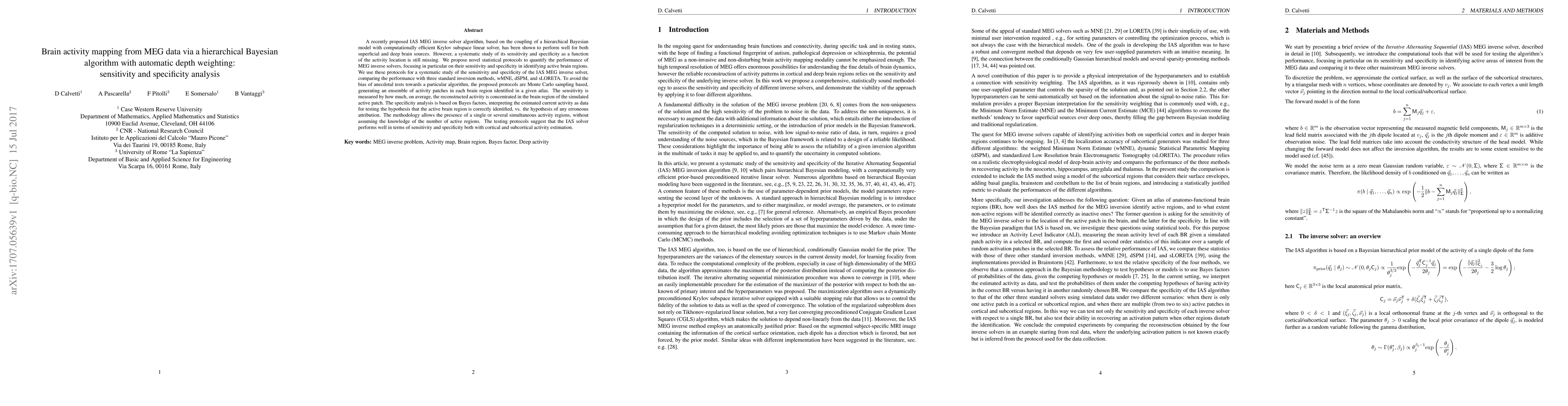 A recently proposed IAS MEG inverse solver algorithm, based on the coupling of a hierarchical Bayesian model with computationally efficient Krylov subspace linear solver, has been shown to perform well for both superficial and deep brain sources. However, a systematic study of its sensitivity and specificity as a function of the activity location is still missing. We propose novel statistical protocols to quantify the performance of MEG inverse solvers, focusing in particular on their sensitivity and specificity in identifying active brain regions. We use these protocols for a systematic study of the sensitivity and specificity of the IAS MEG inverse solver, comparing the performance with three standard inversion methods, wMNE, dSPM, and sLORETA. To avoid the bias of anecdotal tests towards a particular algorithm, the proposed protocols are Monte Carlo sampling based, generating an ensemble of activity patches in each brain region identified in a given atlas. The sensitivity is measured by how much, on average, the reconstructed activity is concentrated in the brain region of the simulated active patch. The specificity analysis is based on Bayes factors, interpreting the estimated current activity as data for testing the hypothesis that the active brain region is correctly identified, vs. the hypothesis of any erroneous attribution. The methodology allows the presence of a single or several simultaneous activity regions, without assuming the knowledge of the number of active regions. The testing protocols suggest that the IAS solver performs well in terms of sensitivity and specificity both with cortical and subcortical activity estimation.