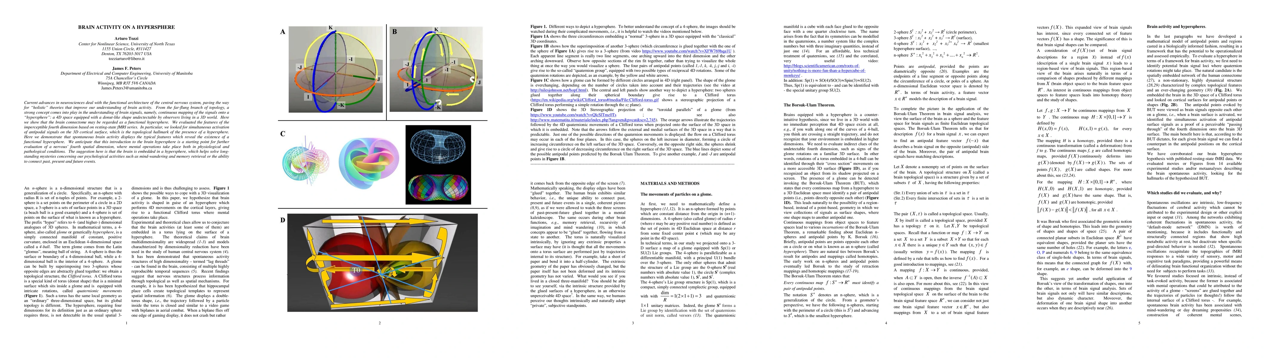 Current advances in neurosciences deal with the functional architecture of the central nervous system, paving the way for holistic theories that improve our understanding of brain activity. From topology, a strong concept comes into play in the understanding of brain signals, namely, continuous mapping of the signals onto a hyper-sphere, a 4-dimensional space equipped with a doughnut-like shape that is not detected by observers living in a 3-dimensional world. We evaluate the features of the imperceptible 4th dimension based on resting state functional magnetic resonance imaging series. In particular, we looked for simultaneous activation of antipodal signals on the surface of a cortical hyper-sphere. In this article, we demonstrate that spontaneous brain activity displays the typical features which reveal the existence of a functional hyper-sphere. The suggestion here is that the brain is embedded in a hyper-sphere, which helps solve long-standing mysteries concerning our psychological activities such mind-wandering and memory retrieval or the ability to connect, pasts and future events.