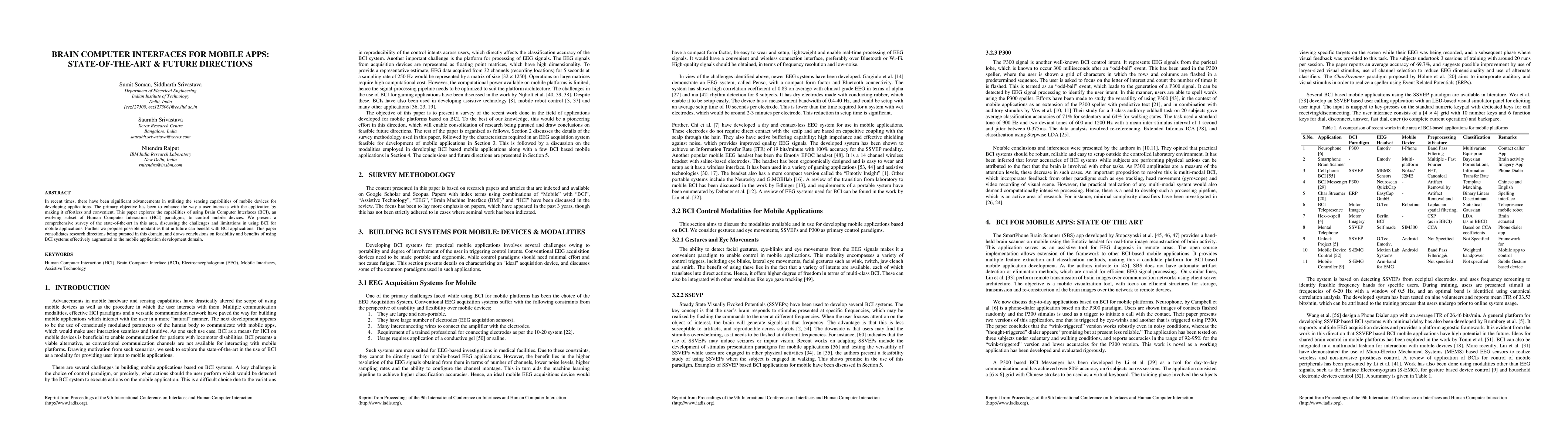 This paper surveys the current state-of-the-art in Brain Computer Interfaces (BCI) for mobile applications, highlighting challenges and limitations, and proposes future modalities to enhance user interaction. It concludes on the feasibility and potential benefits of integrating BCI systems into mobile app development.