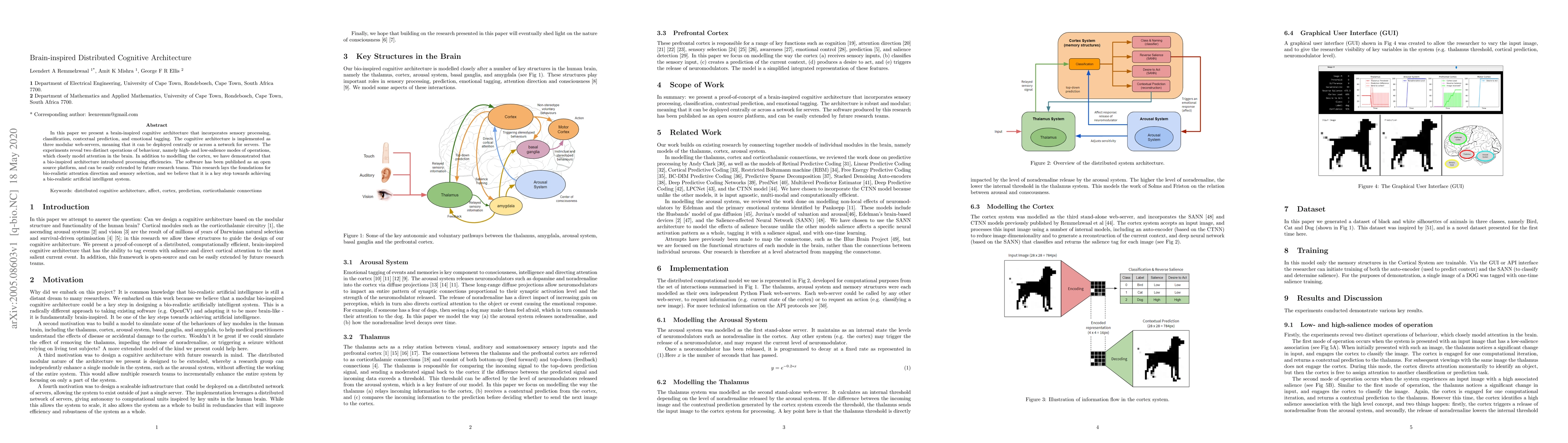 In this paper we present a brain-inspired cognitive architecture that incorporates sensory processing, classification, contextual prediction, and emotional tagging. The cognitive architecture is implemented as three modular web-servers, meaning that it can be deployed centrally or across a network for servers. The experiments reveal two distinct operations of behaviour, namely high- and low-salience modes of operations, which closely model attention in the brain. In addition to modelling the cortex, we have demonstrated that a bio-inspired architecture introduced processing efficiencies. The software has been published as an open source platform, and can be easily extended by future research teams. This research lays the foundations for bio-realistic attention direction and sensory selection, and we believe that it is a key step towards achieving a bio-realistic artificial intelligent system.