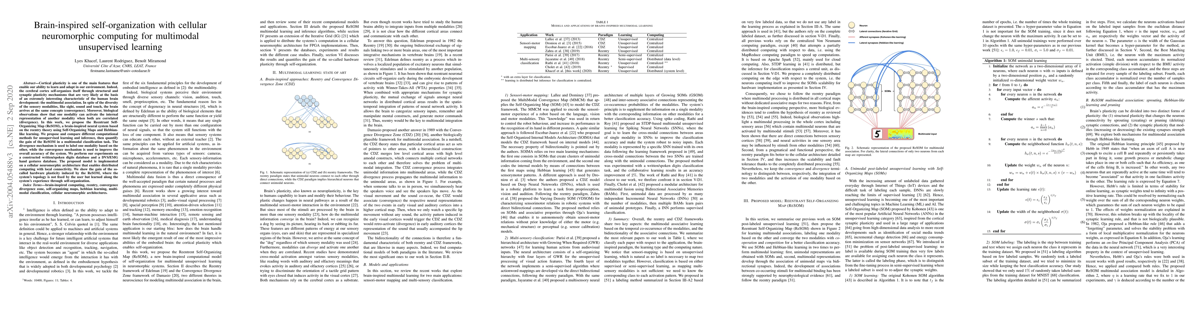 A brain-inspired neural system called ReSOM is proposed for multimodal unsupervised learning, leveraging reentry theory and Hebbian-like learning to improve accuracy in image and gesture recognition tasks.