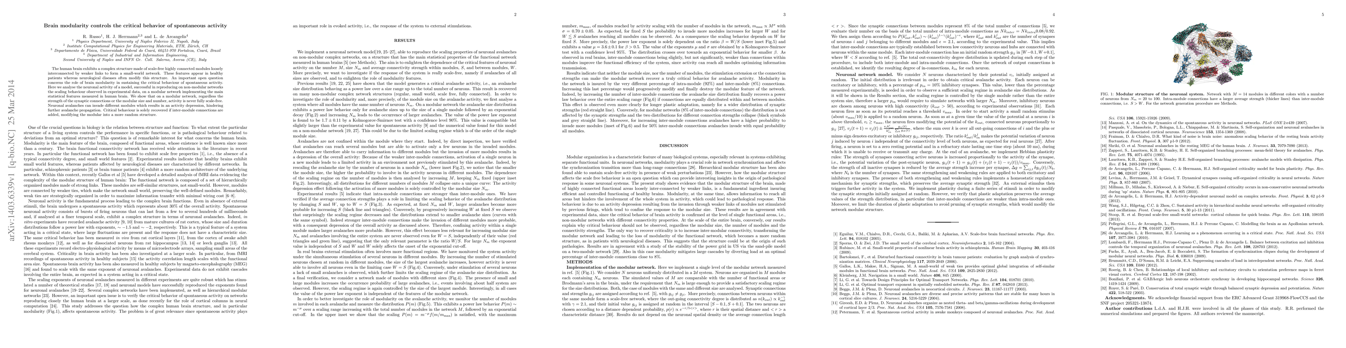 A study investigates how brain modularity affects spontaneous activity in the brain, finding that inter-module connections are crucial for recovering critical behavior after an avalanche.