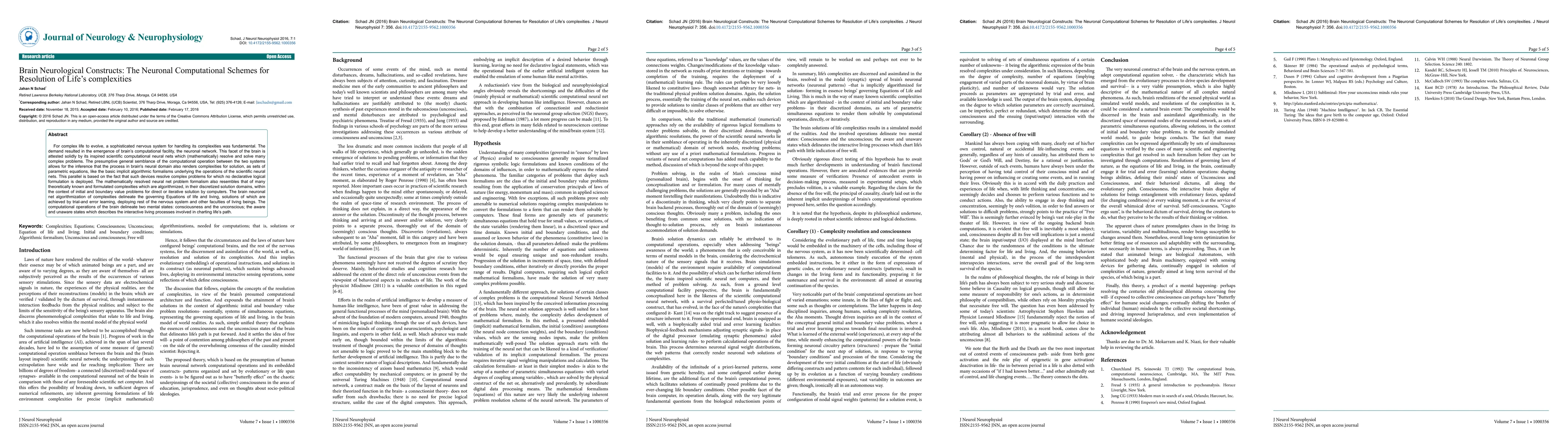 The research paper explores how the brain's neuronal network, a computational system, solves complex problems, mirroring mathematical neural networks, to govern life and living processes.