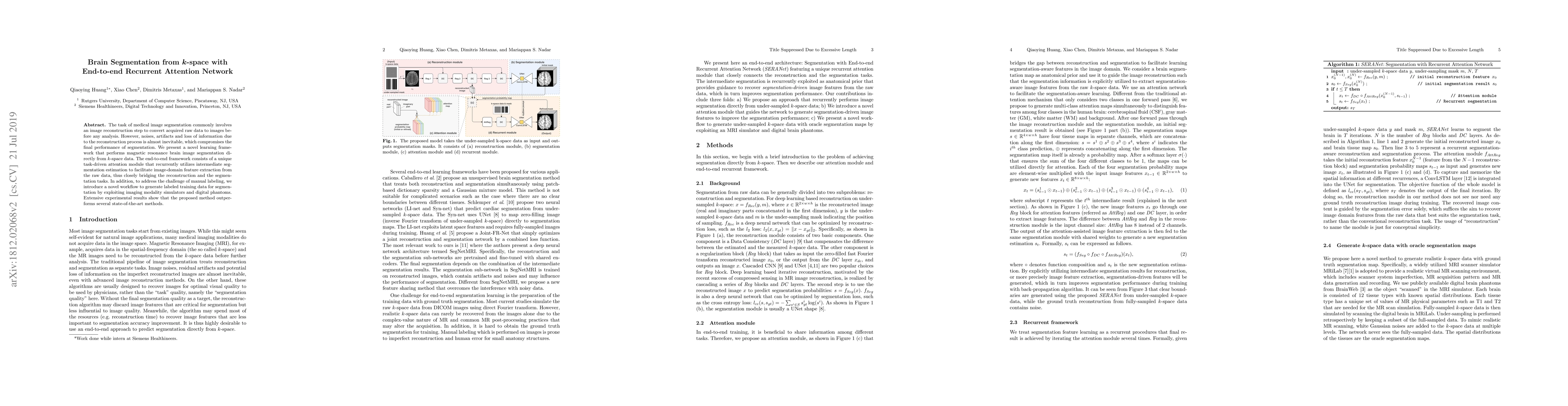 The task of medical image segmentation commonly involves an image reconstruction step to convert acquired raw data to images before any analysis. However, noises, artifacts and loss of information due to the reconstruction process are almost inevitable, which compromises the final performance of segmentation. We present a novel learning framework that performs magnetic resonance brain image segmentation directly from k-space data. The end-to-end framework consists of a unique task-driven attention module that recurrently utilizes intermediate segmentation estimation to facilitate image-domain feature extraction from the raw data, thus closely bridging the reconstruction and the segmentation tasks. In addition, to address the challenge of manual labeling, we introduce a novel workflow to generate labeled training data for segmentation by exploiting imaging modality simulators and digital phantoms. Extensive experimental results show that the proposed method outperforms several state-of-the-art methods.