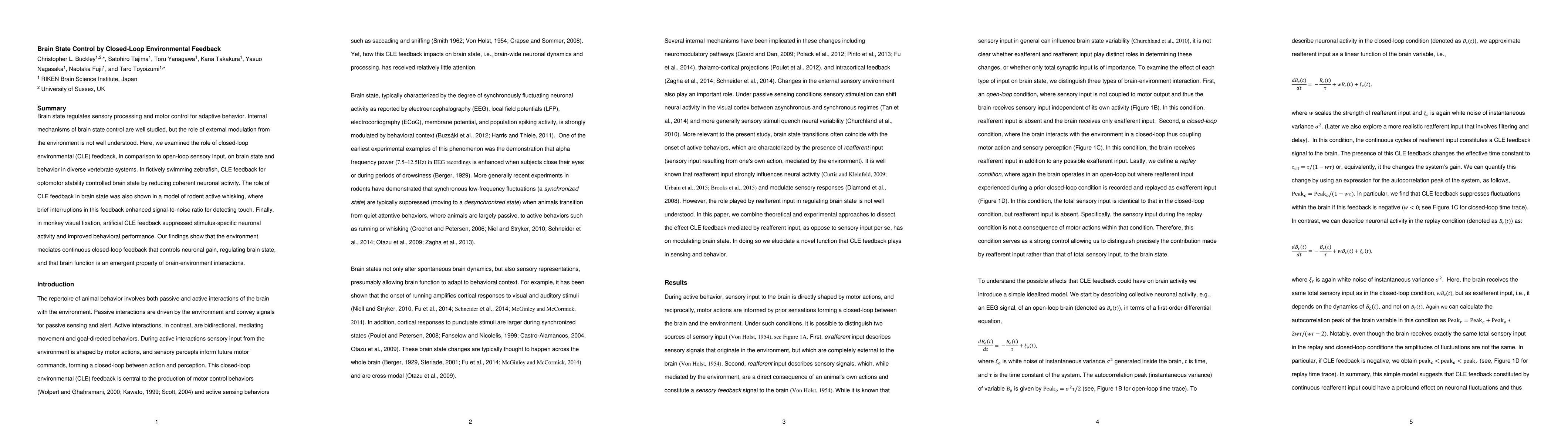 This paper investigates the role of closed-loop environmental feedback in regulating brain state and behavior across diverse vertebrate systems, demonstrating that such feedback modulates neuronal activity and enhances sensory processing and motor control. The study highlights the importance of environmental interactions in shaping brain function.