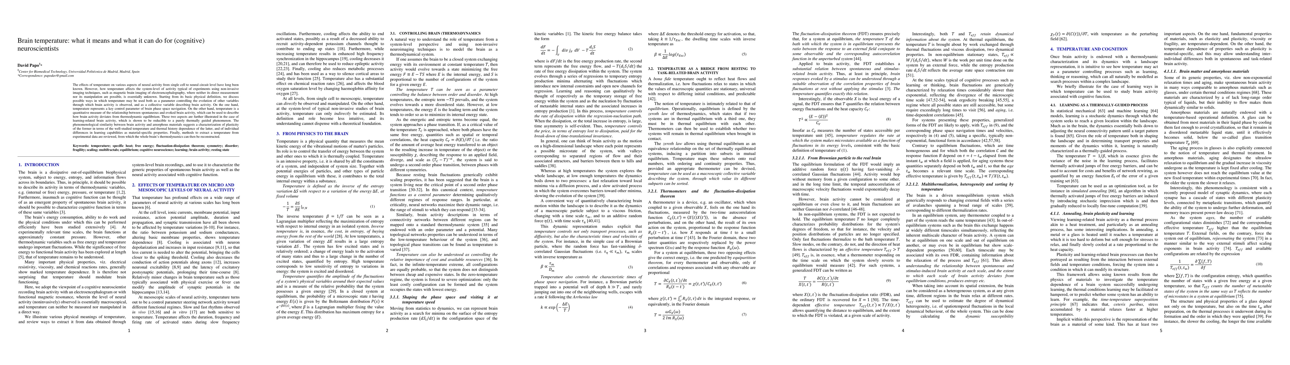 This paper explores how brain temperature affects neural activity in non-invasive imaging techniques, including its potential to control and describe brain activity, with implications for cognitive neuroscientists. The study discusses methods to extract brain temperature from experimental data, especially in learning-related activities.