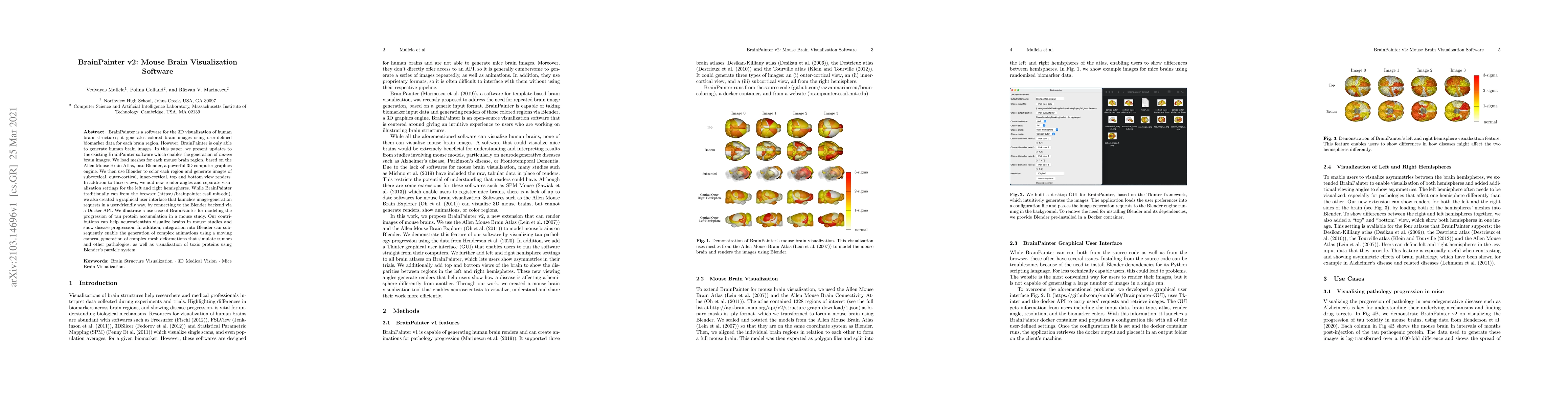 A software called Brain-Painter was developed to visualize brain structures, biomarkers, and associated pathological processes in mouse brains.