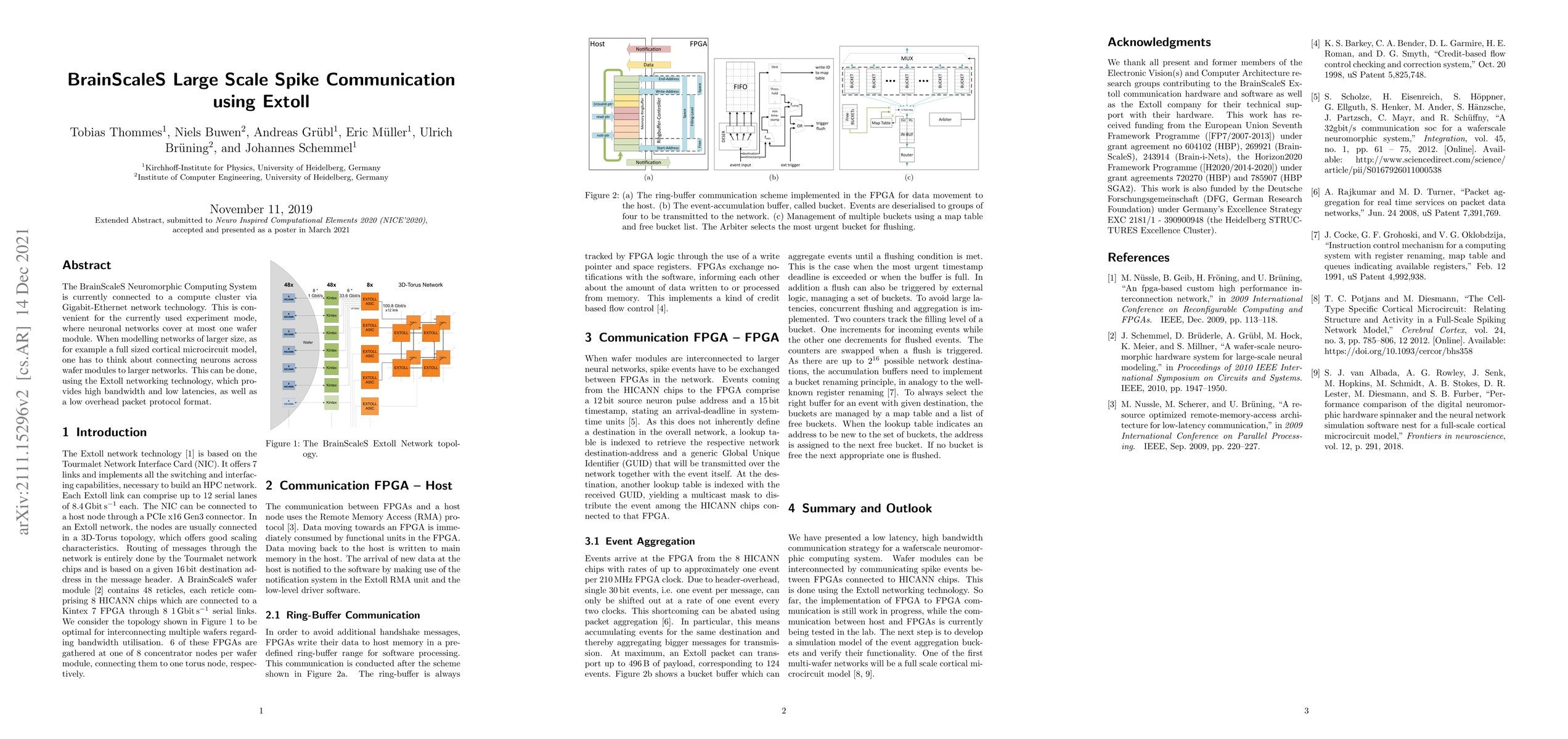Researchers connected BrainScaleS Neuromorphic Computing System to a compute cluster using Extoll networking technology to support larger neural network models, enabling high bandwidth and low latency connections.