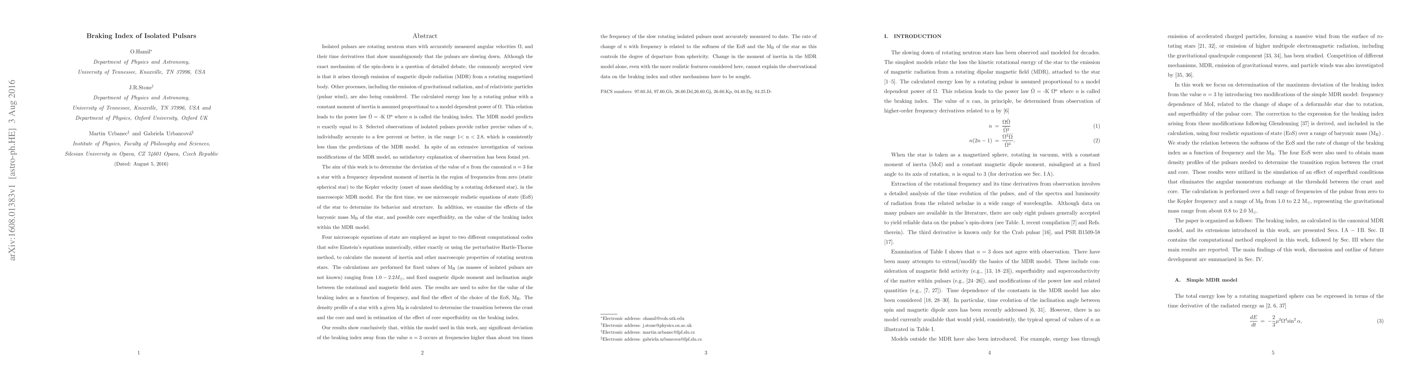 This research investigates the discrepancy between observed braking indices (n) of isolated pulsars, which are less than the predicted 3 from the magnetic dipole radiation (MDR) model. The study employs realistic equations of state and examines the impact of a frequency-dependent moment of inertia, baryonic mass, and core superfluidity on the braking index within the MDR model.
