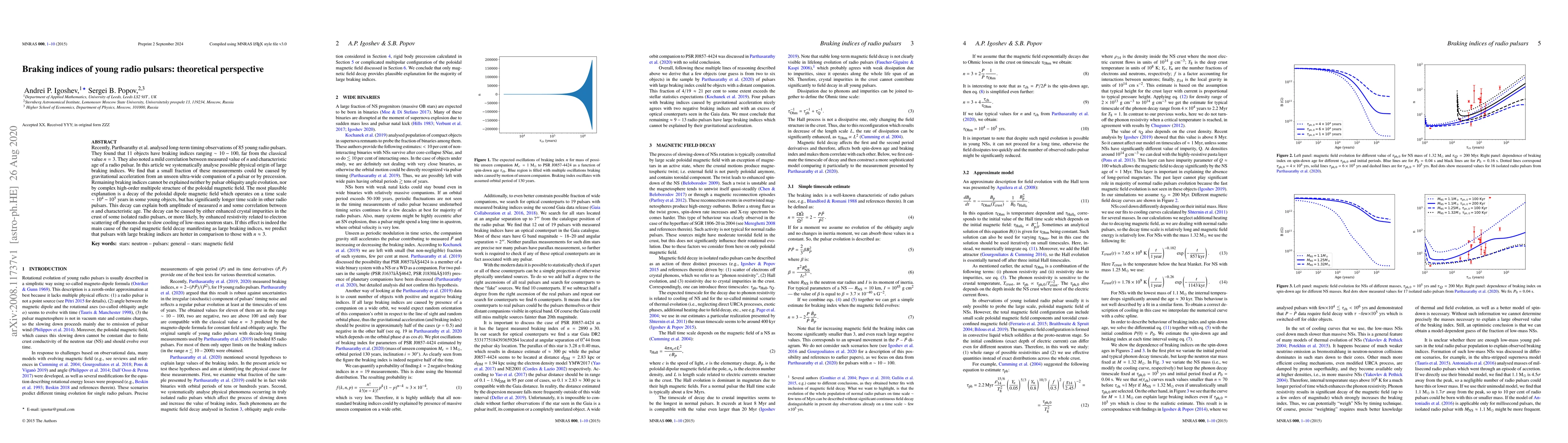 This paper investigates the large braking indices observed in young radio pulsars, finding that they may result from the decay of the poloidal dipole magnetic field due to enhanced resistivity or slower cooling in low-mass neutron stars, rather than the classical value of $n=3$. The study suggests that pulsars with large braking indices are likely hotter than those with typical braking indices.