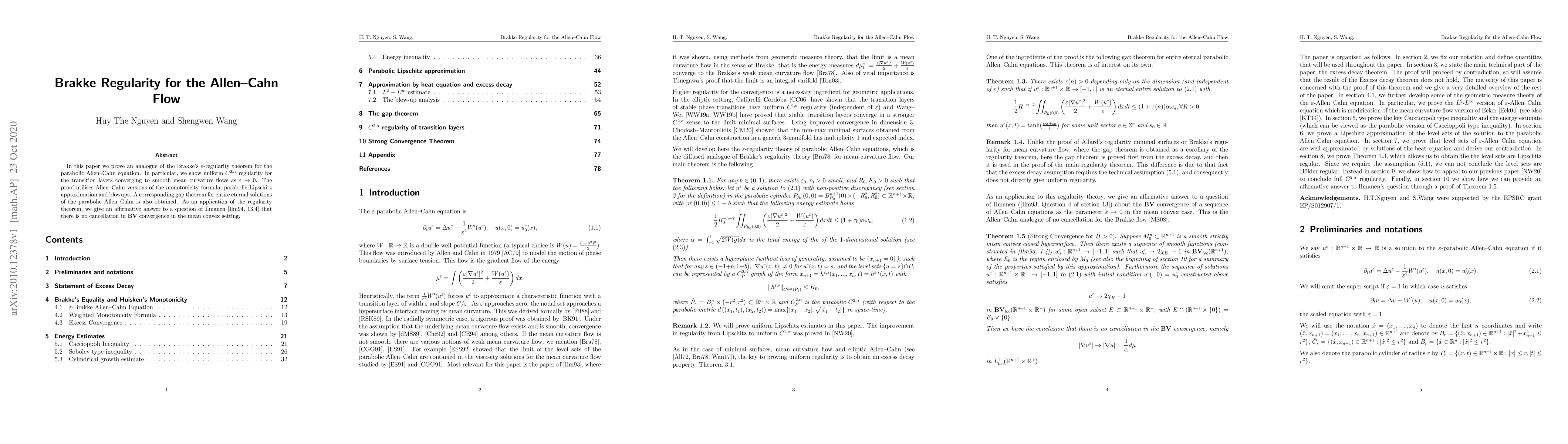 In this paper we prove an analogue of the Brakke's $\varepsilon$-regularity theorem for the parabolic Allen-Cahn equation. In particular, we show uniform $C^{2,\alpha}$ regularity for the transition layers converging to smooth mean curvature flows as $\varepsilon\rightarrow0$. The proof utilises Allen-Cahn versions of the monotonicity formula, parabolic Lipschitz approximation and blowups. A corresponding gap theorem for entire eternal solutions of the parabolic Allen-Cahn is also obtained. As an application of the regularity theorem, we give an affirmative answer to a question of Ilmanen that there is no cancellation in $\mathbf {BV}$ convergence in the mean convex setting.