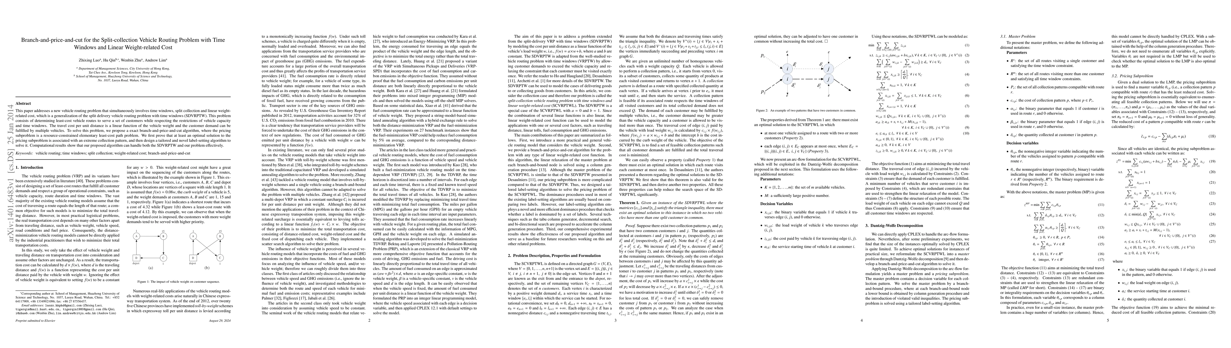 This paper proposes a branch-and-price-and-cut algorithm to solve a generalized split-collection vehicle routing problem with time windows and linear weight-related costs. The algorithm efficiently determines least-cost routes respecting vehicle capacity and time windows, and computational results demonstrate its effectiveness.
