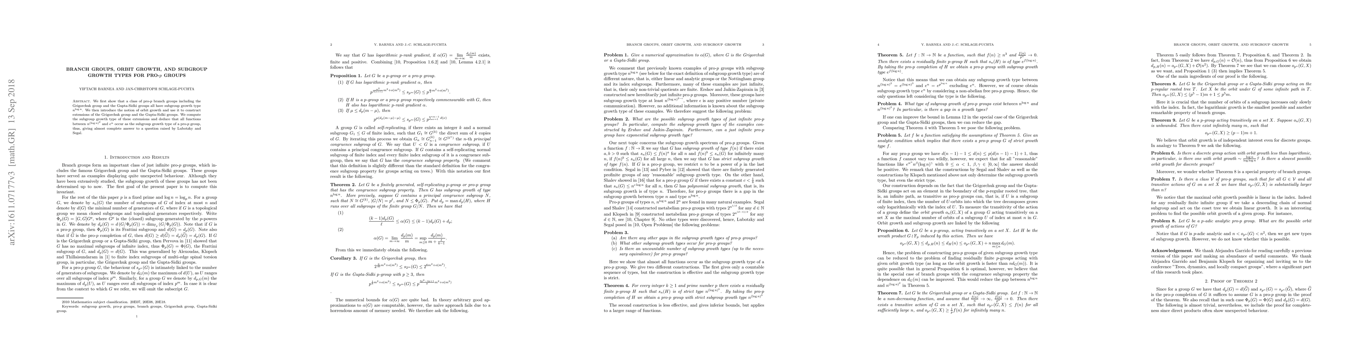 We first show that a class of pro-$p$ branch groups including the Grigorchuk group and the Gupta-Sidki groups all have subgroup growth type $n^{\log n}$. We then introduce the notion of orbit growth and use it to construct extensions of the Grigorchuk group and the Gupta-Sidki groups. We compute the subgroup growth type of these extensions and deduce that all functions between $n^{(\log n)^2}$ and $e^n$ occur as the subgroup growth type of a pro-$p$ group, thus, giving almost complete answer to a question raised by Lubotzky and Segal.
