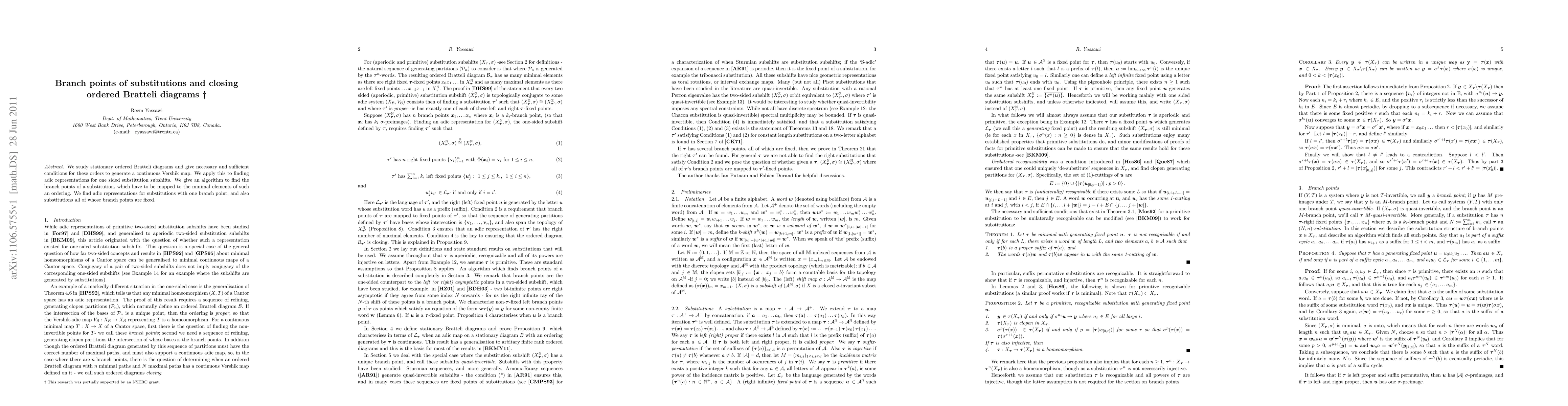 This paper investigates stationary ordered Bratteli diagrams and provides conditions for generating continuous Vershik maps, applying these to find adic representations for substitution subshifts. It also introduces an algorithm to determine the branch points of substitutions, which are mapped to minimal elements in the ordering.