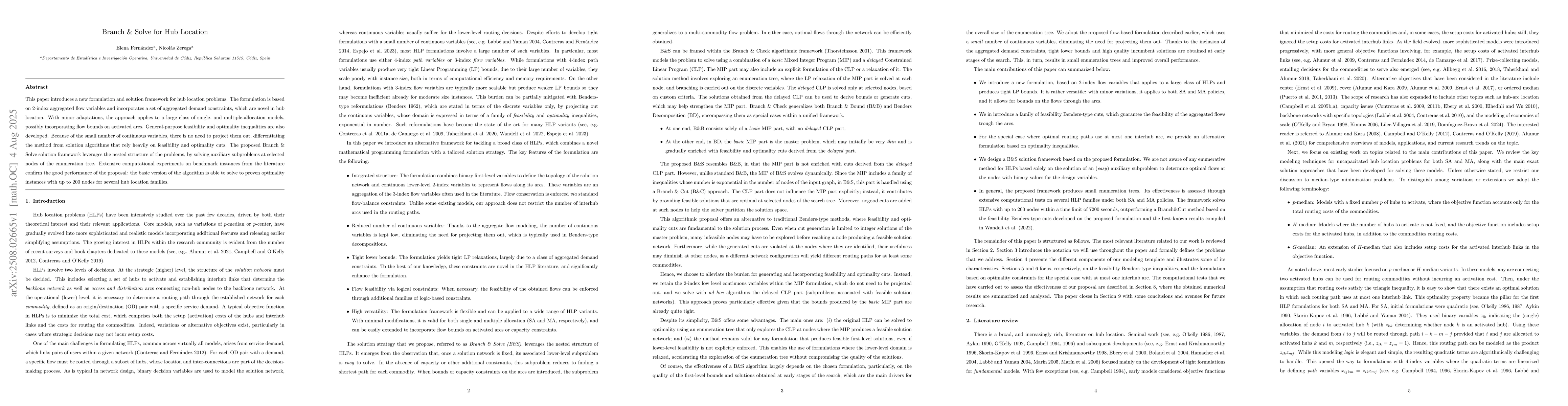 This paper introduces a new formulation and solution framework for hub location problems. The formulation is based on 2-index aggregated flow variables and incorporates a set of aggregated demand constraints, which are novel in hub location. With minor adaptations, the approach applies to a large class of single- and multiple-allocation models, possibly incorporating flow bounds on activated arcs. General-purpose feasibility and optimality inequalities are also developed. Because of the small number of continuous variables, there is no need to project them out, differentiating the method from solution algorithms that rely heavily on feasibility and optimality cuts. The proposed Branch & Solve solution framework leverages the nested structure of the problems, by solving auxiliary subproblems at selected nodes of the enumeration tree. Extensive computational experiments on benchmark instances from the literature confirm the good performance of the proposal: the basic version of the algorithm is able to solve to proven optimality instances with up to 200 nodes for several hub location families.
