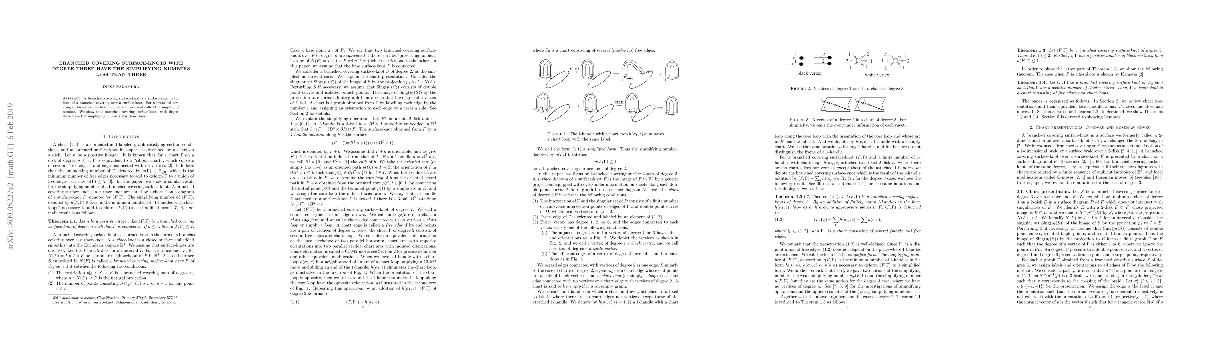 Branched covering surface-knots with degree three have simplifying numbers less than three, a key finding in topology that has implications for understanding knot structures.