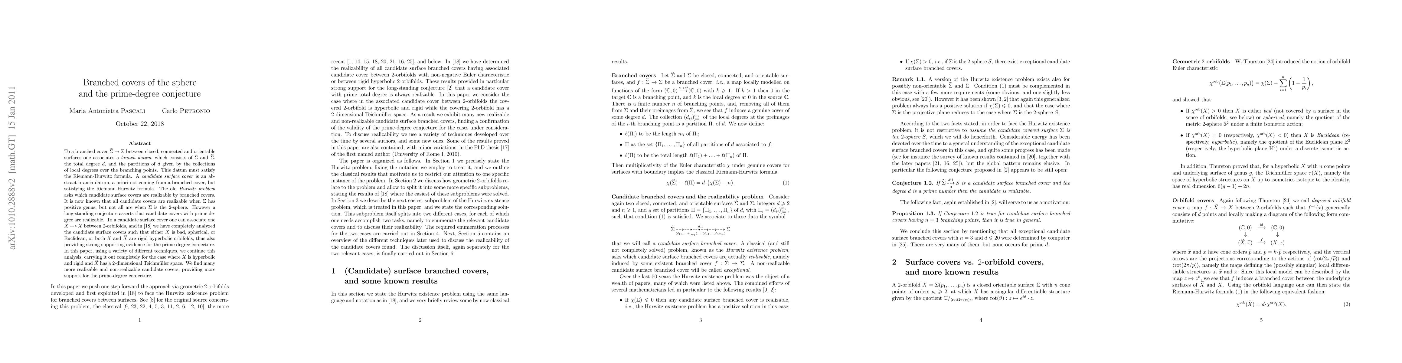 This paper investigates branched covers of the sphere and supports the prime-degree conjecture by analyzing candidate surface covers. It completes the analysis for the case where the covered surface is hyperbolic and rigid, finding numerous realizable and non-realizable covers, thus providing further evidence for the conjecture.