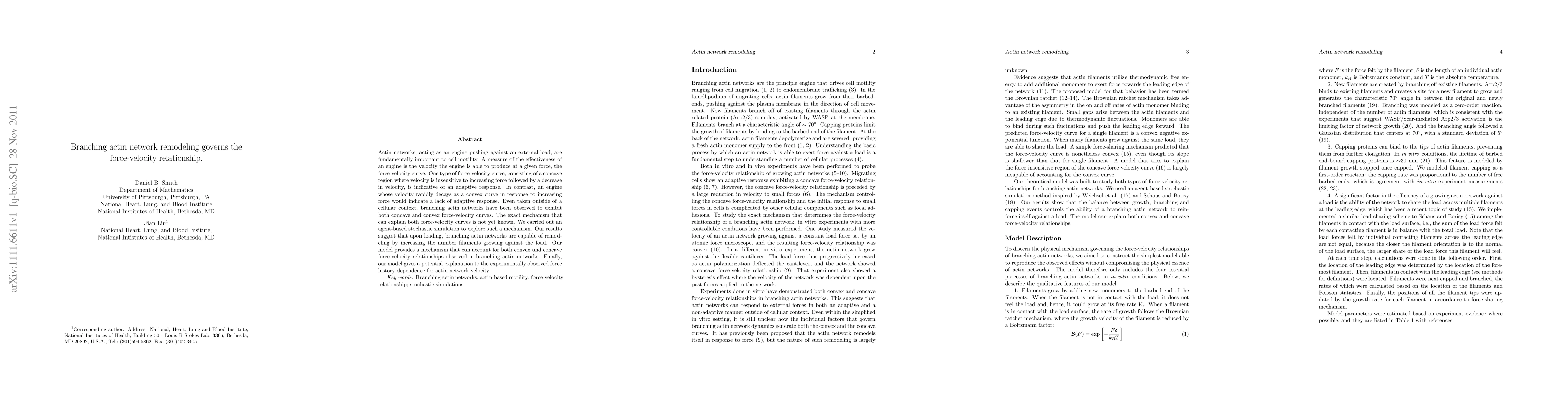 This paper explores how branching actin networks remodel to govern their force-velocity relationship through stochastic simulations. The study reveals that actin networks can adapt to loading by increasing the number of filaments growing against the load, providing a mechanism for both concave and convex force-velocity curves.