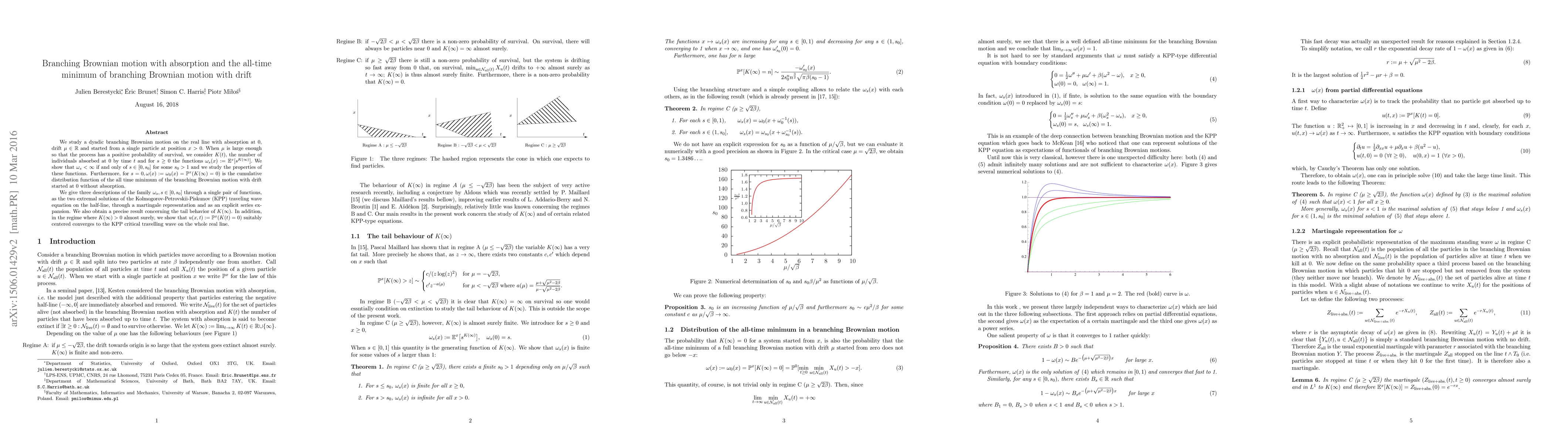 This paper investigates a branching Brownian motion with absorption at 0 and drift, focusing on the number of particles absorbed and the all-time minimum. It provides three descriptions of the functions representing these quantities, including solutions to the KPP equation, a martingale representation, and an explicit series expansion.