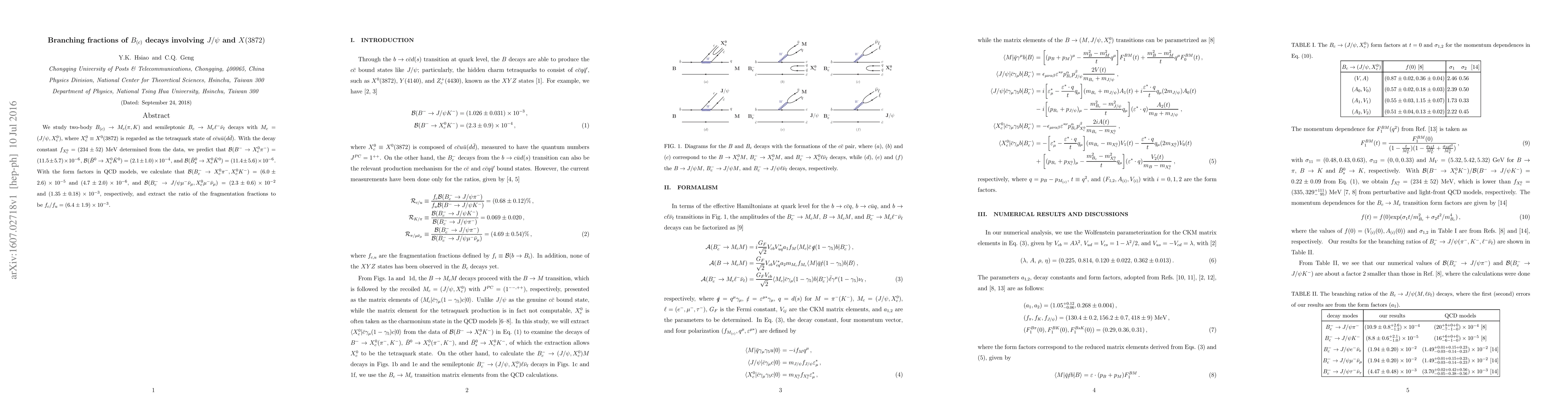 This paper investigates the branching fractions of $B_{(c)}$ decays into $J/\psi$ and the tetraquark state $X(3872)$, predicting several decay probabilities and extracting the ratio of fragmentation fractions for charm and up quarks.
