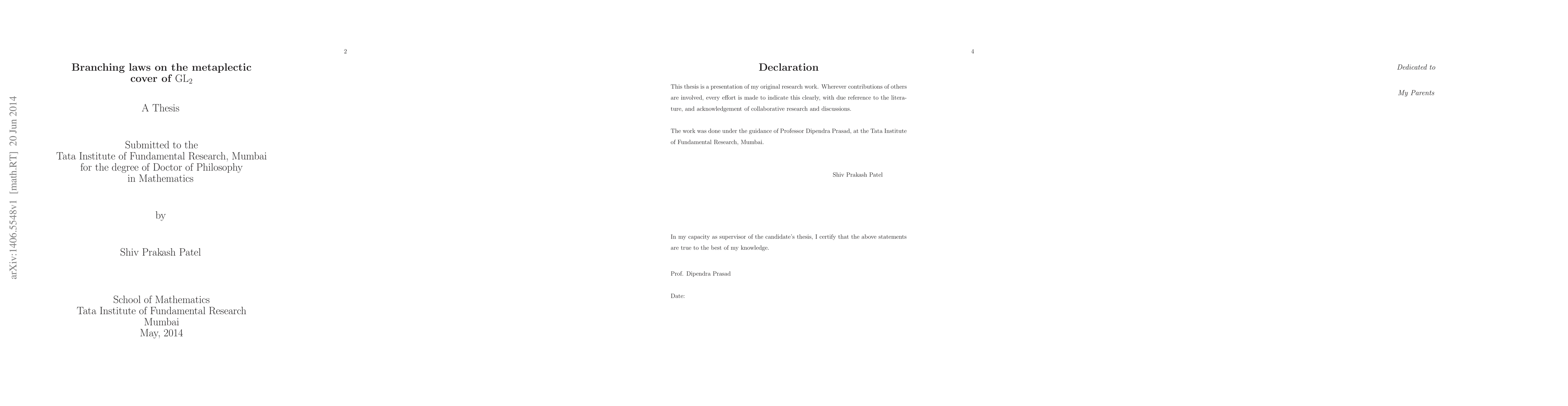 This paper investigates the branching laws for the metaplectic cover of ${\rm GL}_{2}$, focusing on restriction problems for pairs $(\widetilde{{\rm GL}_{2}(E)}, {\rm GL}_{2}(F))$ and $(\widetilde{{\rm GL}_{2}(E)}, D_{F}^{\times})$. Unlike the original Prasad results, this study finds no multiplicity one but presents an analogous dichotomy.