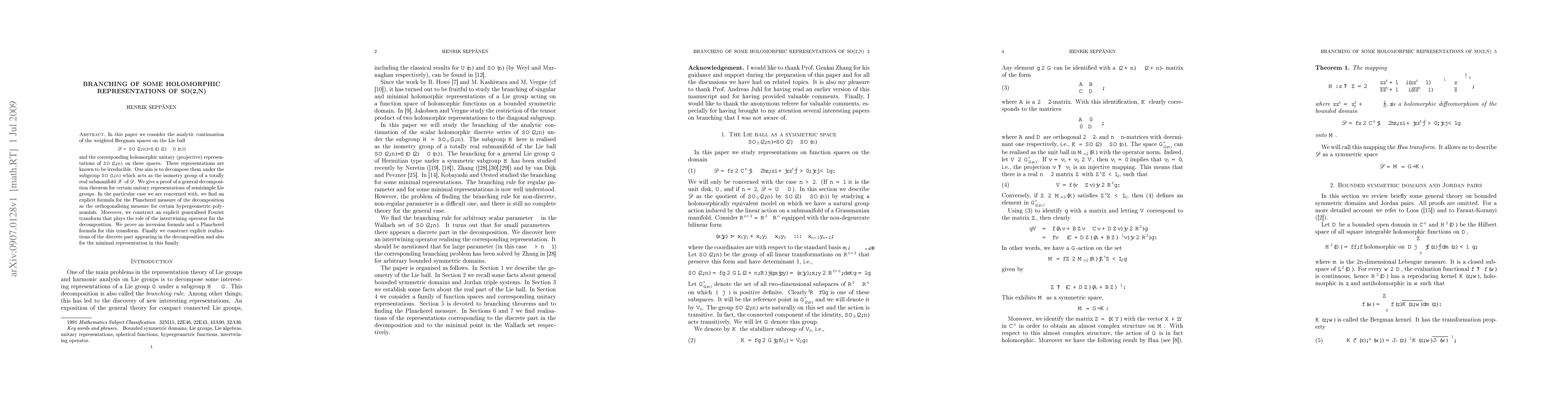 This paper studies the analytic continuation of weighted Bergman spaces on the Lie ball for the group SO(2,N) and decomposes its irreducible holomorphic unitary representations under the subgroup SO(1,N). It provides an explicit formula for the Plancherel measure and constructs a generalized Fourier transform with inversion and Plancherel formulas, along with realizations of the discrete part of the decomposition.