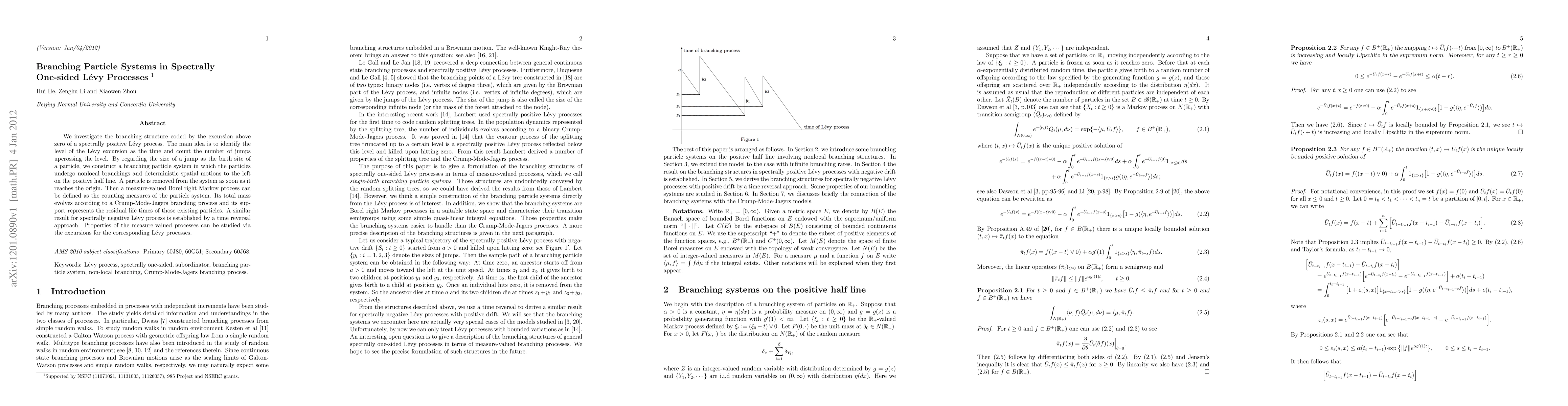 This paper explores the branching particle system generated by the excursions above zero in spectrally positive and negative Lévy processes. It constructs a system where particles represent jumps, undergo nonlocal branching, and move deterministically to the left, with a Crump-Mode-Jagers branching process governing their total mass evolution.