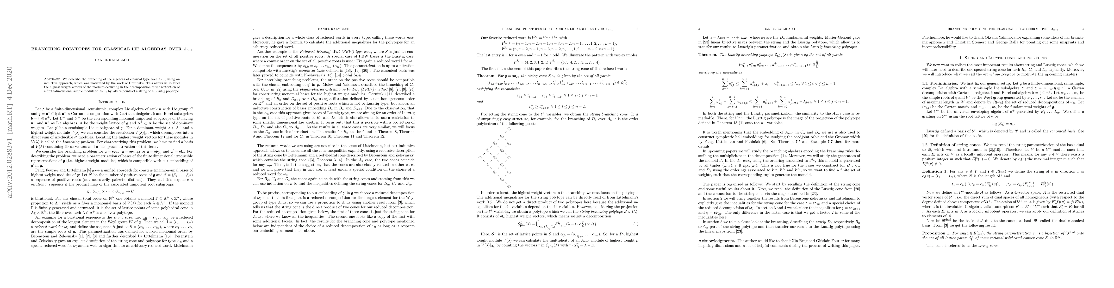 This paper inductively explores the branching of classical Lie algebras over $A_{n-1}$ using a method inspired by Gornitskii, enabling the labeling of highest weight vectors in module decompositions via string or Lusztig polytope lattice points.