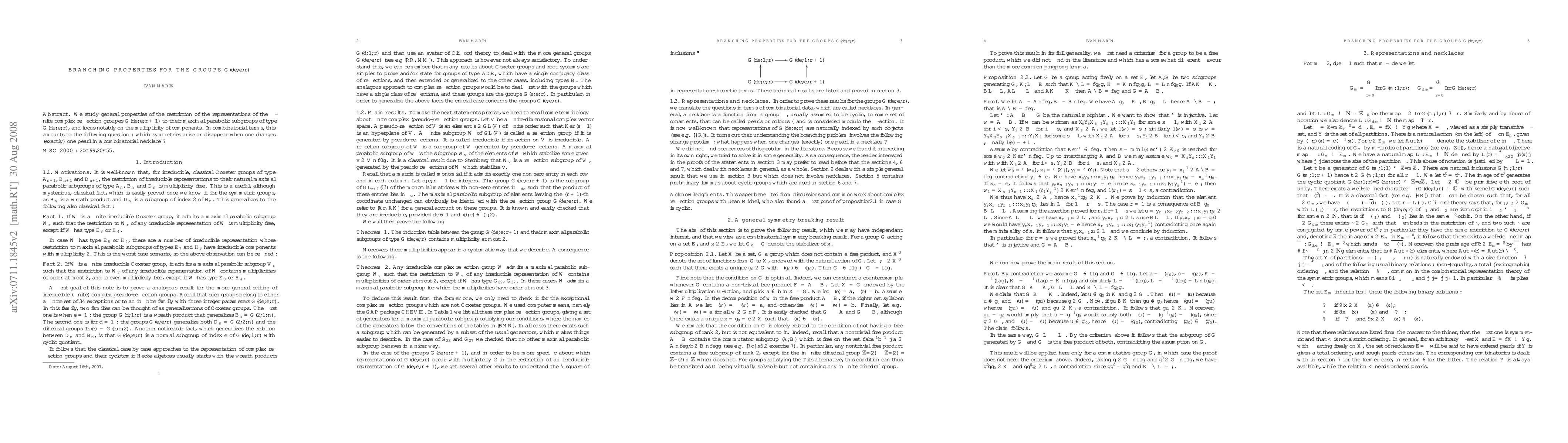 This paper examines the branching properties of representations of finite complex reflection groups $G(de,e,r+1)$ when restricted to their $G(de,e,r)$ subgroups, focusing on how symmetries emerge or vanish when altering a single element in a combinatorial structure.