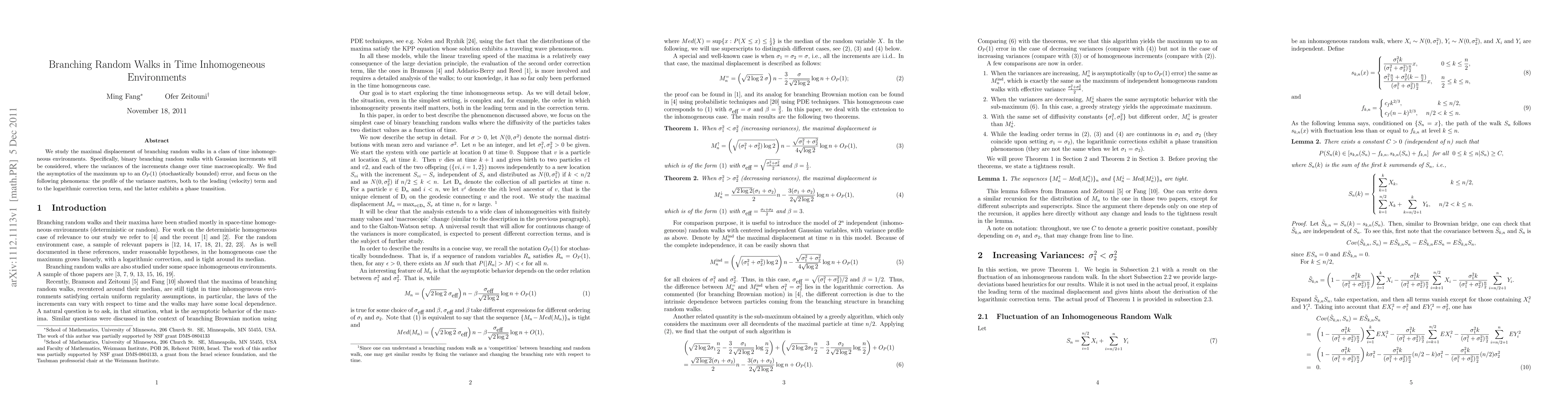 We study the maximal displacement of branching random walks in a class of time inhomogeneous environments. Specifically, binary branching random walks with Gaussian increments will be considered, where the variances of the increments change over time macroscopically. We find the asymptotics of the maximum up to an $O_P(1)$ (stochastically bounded) error, and focus on the following phenomena: the profile of the variance matters, both to the leading (velocity) term and to the logarithmic correction term, and the latter exhibits a phase transition.