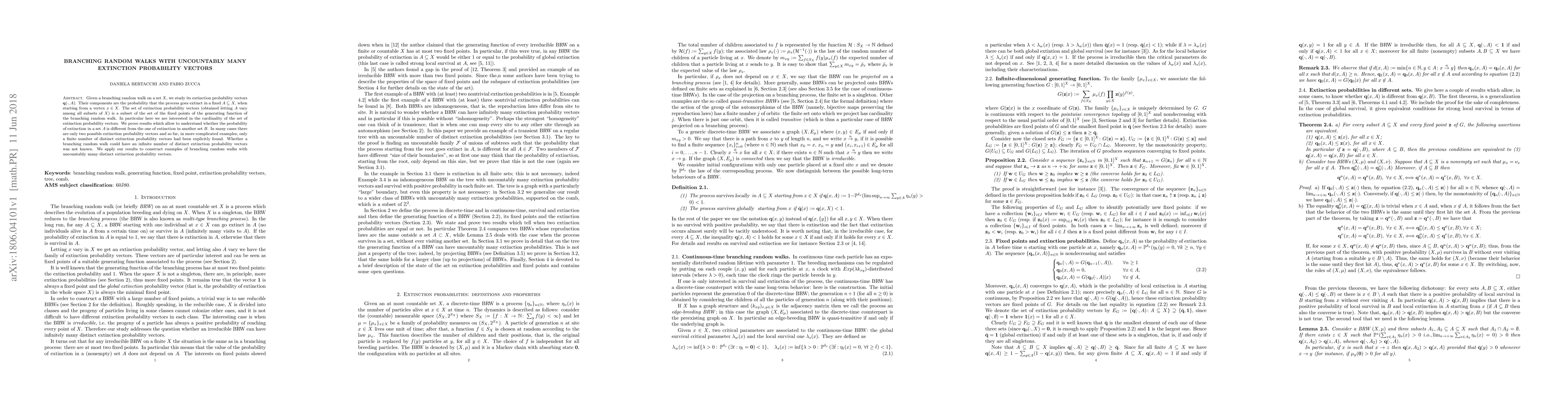 This paper investigates the extinction probability vectors of branching random walks on a set $X$, proving that there can exist uncountably many distinct extinction probability vectors, thus resolving a longstanding question about the cardinality of such vectors. The study provides insights into the differences in extinction probabilities across various subsets of $X$.